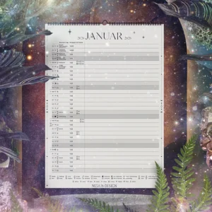 Der kosmische Kalender für 2026 besteht aus 15 Seiten – Infos zu Human Design Transiten, rückläufige Planeten, Portaltagen und noch einiges mehr sind hier zu finden. Gestalte eine Zukunft, die sich auf natürliche Kreisläufe und die Verbindung aller Dinge konzentriert und sich auf die Weisheit der Sterne und der Erde stützt.